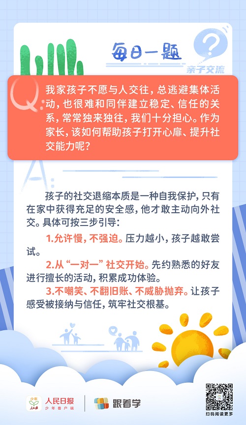 每日一題丨孩子孤僻逃避社交,家長該如何引導(dǎo)?