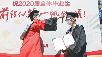 接過學(xué)位證書,本科畢業(yè)生蔡杰和院長拍了一張合影。他說:“沒有遺憾了,這個畢業(yè)典禮特殊而完美!”