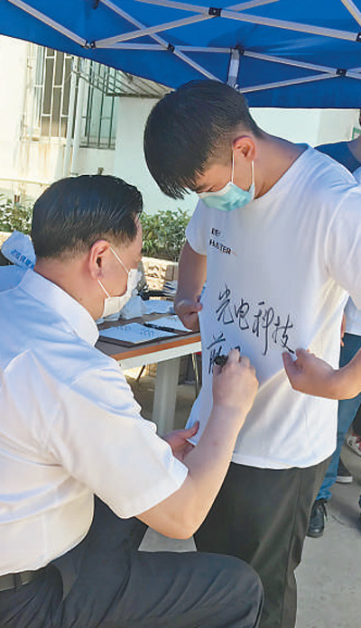 8日,華中科技大學(xué)校長為畢業(yè)生寫下祝福語。朱必勇攝
