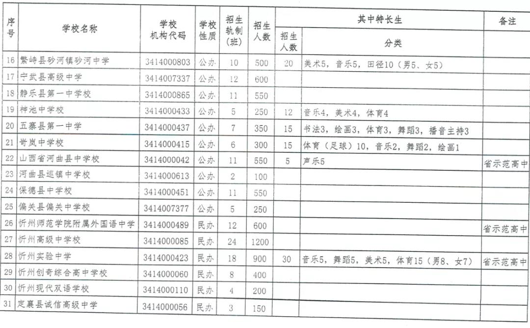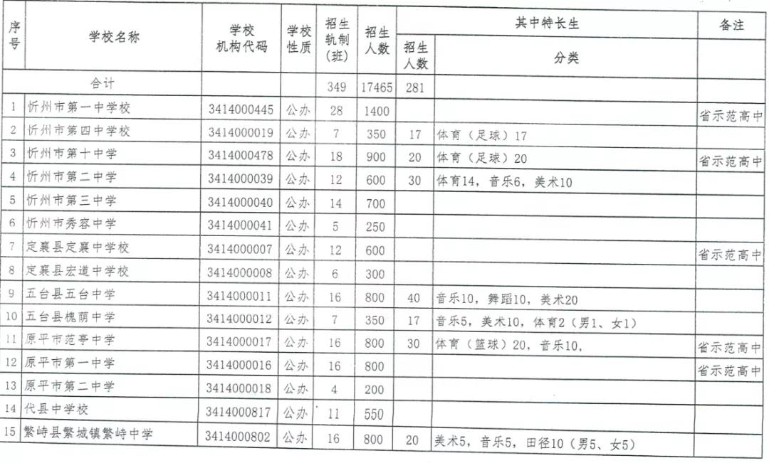 附件:1.忻州市2020年普通高中學(xué)校分校招生計劃