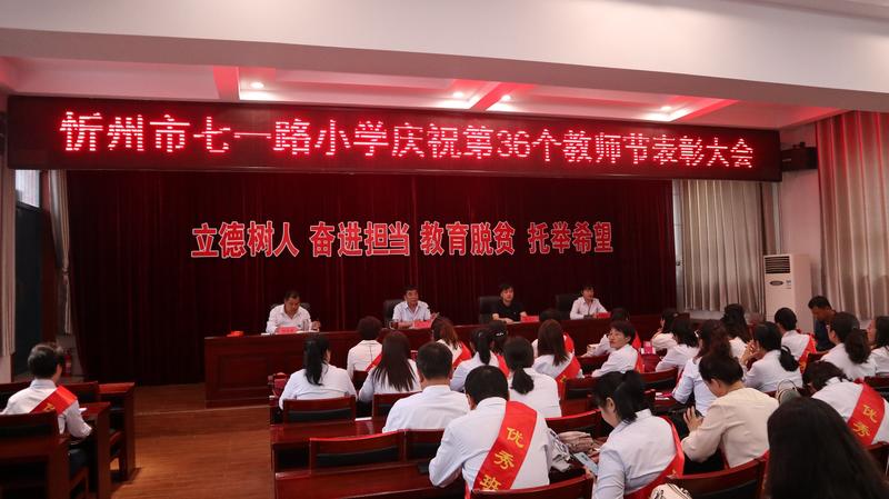 金風(fēng)送爽,涼霜驚秋。伴隨著時光款款的腳步,相攜著歲月累累的果實,為傳承尊師重教的文明火種,增強教師的光榮感、責(zé)任感、使命感,培養(yǎng)學(xué)生尊師重教的良好品德,在第36個教師節(jié)即將來臨之際,9月9日下午,忻州市七一路小學(xué)舉行了“立德樹人奮進(jìn)擔(dān)當(dāng),教育脫貧托舉希望”第36個教師節(jié)表彰活動,會議由郭彥君副校長主持,全體教職工參加了表彰大會。