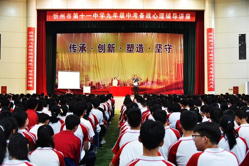 本網(wǎng)訊 6月3日晚,忻州十一中特邀資深心理專家張廣梅老師在文體苑為九年級學生做了中考備戰(zhàn)心理輔導講座。校長張云長主持講座并講話。