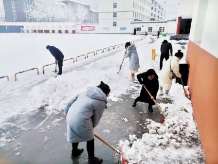 岢嵐三中教師清除校園內的積雪,喜迎春季開學。田沁梅攝