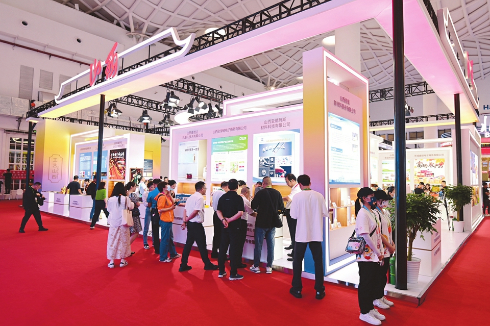 4月10日,第三屆中國國際消費(fèi)品博覽會現(xiàn)場,山西展區(qū)吸引了眾多商客。 本報記者孫榮祥攝