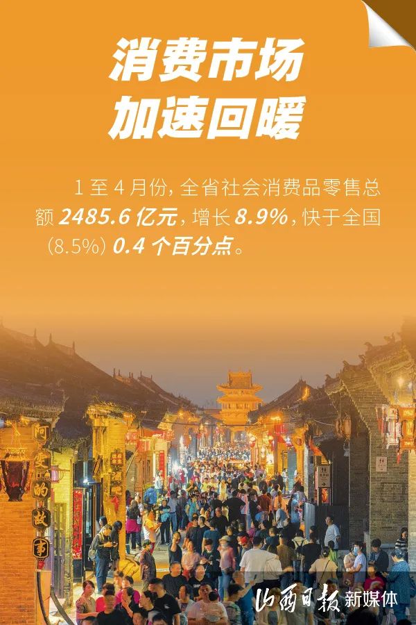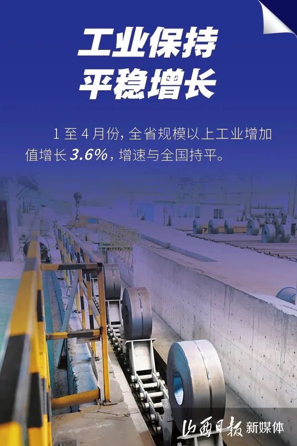 5月19日,山西省統(tǒng)計局公布1至4月份,全省經(jīng)濟運行情況:1至4月份,全省工業(yè)生產(chǎn)平穩(wěn)增長,消費市場加速回暖,就業(yè)物價總體穩(wěn)定,經(jīng)濟運行延續(xù)恢復(fù)向好態(tài)勢。一組海報,了解1至4月山西經(jīng)濟數(shù)據(jù)。
