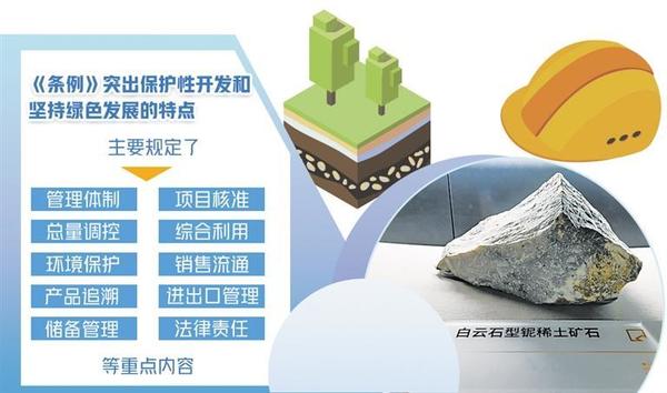 《稀土管理?xiàng)l例》(以下簡(jiǎn)稱《條例》)日前公布,自2024年10月1日起施行?!稐l例》明確,稀土資源屬于國(guó)家所有,國(guó)家依法加強(qiáng)對(duì)稀土資源的保護(hù),對(duì)稀土資源實(shí)行保護(hù)性開采。同時(shí),鼓勵(lì)和支持稀土產(chǎn)業(yè)新技術(shù)、新工藝、新產(chǎn)品、新材料、新裝備的研發(fā)和應(yīng)用,持續(xù)提升稀土資源開發(fā)利用水平,推動(dòng)稀土產(chǎn)業(yè)高端化、智能化、綠色化發(fā)展。專家認(rèn)為,《條例》首次以行政立法形式規(guī)范稀土資源的開發(fā)利用,主要規(guī)定了管理體制、項(xiàng)目核準(zhǔn)、總量調(diào)控、綜合利用、環(huán)境保護(hù)、銷售流通、產(chǎn)品追溯、進(jìn)出口管理、儲(chǔ)備管理、法律責(zé)任等重點(diǎn)內(nèi)容,突出了保護(hù)性開發(fā)和堅(jiān)持綠色發(fā)展的特點(diǎn),對(duì)推動(dòng)稀土產(chǎn)業(yè)高質(zhì)量發(fā)展具有重大意義。規(guī)范稀土資源開發(fā)利用稀土是現(xiàn)代工業(yè)中不可或缺的重要元素和關(guān)鍵戰(zhàn)略資源。中國(guó)有色金屬工業(yè)協(xié)會(huì)黨委書記、會(huì)長(zhǎng)葛紅林表示,稀土被譽(yù)為“工業(yè)維生素”,是高新技術(shù)產(chǎn)業(yè)和國(guó)防科技工業(yè)的關(guān)鍵原料,是關(guān)系國(guó)家安全和國(guó)民經(jīng)濟(jì)命脈的戰(zhàn)略資源,對(duì)推動(dòng)新型工業(yè)化發(fā)展具有不可替代性。中國(guó)稀土集團(tuán)黨委書記、董事長(zhǎng)敖宏介紹,稀土是改造提升傳統(tǒng)產(chǎn)業(yè)、發(fā)展戰(zhàn)略性新興產(chǎn)業(yè)和國(guó)防科技工業(yè)不可或缺的關(guān)鍵材料。隨著新能源汽車、風(fēng)力發(fā)電、智能制造等戰(zhàn)略性新興產(chǎn)業(yè)和節(jié)能電機(jī)等傳統(tǒng)產(chǎn)業(yè)改造升級(jí),全球稀土需求快速增加。近年來(lái),我國(guó)圍繞稀土行業(yè)準(zhǔn)入標(biāo)準(zhǔn)、行業(yè)整合、環(huán)境保護(hù)等方面出臺(tái)了多項(xiàng)政策措施,產(chǎn)業(yè)發(fā)展良好,帶動(dòng)建立起相對(duì)完整的產(chǎn)業(yè)體系,資源儲(chǔ)量、產(chǎn)量、消費(fèi)量、貿(mào)易量均居世界第一位,并持續(xù)加強(qiáng)稀土資源保護(hù)開發(fā)和合理利用,為科技進(jìn)步和經(jīng)濟(jì)社會(huì)發(fā)展作出了突出貢獻(xiàn)。瞄準(zhǔn)新一輪科技革命和產(chǎn)業(yè)變革方向,我國(guó)加快稀土供給側(cè)結(jié)構(gòu)性改革,不斷開辟發(fā)展新領(lǐng)域新賽道、塑造發(fā)展新動(dòng)能新優(yōu)勢(shì),產(chǎn)業(yè)鏈不斷完善,產(chǎn)業(yè)規(guī)模不斷擴(kuò)大,產(chǎn)品品種不斷豐富,產(chǎn)品質(zhì)量不斷提高,市場(chǎng)規(guī)模不斷擴(kuò)大,國(guó)際影響力持續(xù)提升。但稀土管理仍存在一些突出問(wèn)題,包括覆蓋全產(chǎn)業(yè)鏈的管理職責(zé)、監(jiān)管措施有待完善,產(chǎn)業(yè)創(chuàng)新能力和綠色化智能化水平亟需提高,行業(yè)秩序需要進(jìn)一步規(guī)范,整治非法開采或非法冶煉分離、無(wú)指標(biāo)或超指標(biāo)生產(chǎn)、買賣非法稀土產(chǎn)品等違法行為的手段不足、處罰力度不夠。隨著行業(yè)的不斷發(fā)展,產(chǎn)業(yè)鏈條的持續(xù)延伸,稀土產(chǎn)業(yè)缺少綜合性法律法規(guī)的問(wèn)題日益凸顯,難以滿足行業(yè)高質(zhì)量發(fā)展需求。稀土行業(yè)涵蓋開采、冶煉分離、產(chǎn)品流通、二次利用、進(jìn)出口以及儲(chǔ)備等諸多環(huán)節(jié),涉及中央政府多個(gè)管理部門,亟需依法建立分工明確、密切配合的管理體制。葛紅林認(rèn)為,稀土產(chǎn)業(yè)大而不強(qiáng)、全而不精的問(wèn)題依然存在,在制度保障銜接、資源保護(hù)性開發(fā)、原始基礎(chǔ)創(chuàng)新、行業(yè)秩序規(guī)范等方面仍面臨一些困難和挑戰(zhàn)?!疤貏e是在工藝綠色化、產(chǎn)品高端化、制造智能化方面有待提升,產(chǎn)業(yè)結(jié)構(gòu)要持續(xù)優(yōu)化,產(chǎn)業(yè)秩序需要進(jìn)一步規(guī)范?!卑胶暾f(shuō)。推進(jìn)產(chǎn)業(yè)轉(zhuǎn)型升級(jí)包鋼(集團(tuán))公司黨委常委、副總經(jīng)理兼北方稀土黨委書記、董事長(zhǎng)劉培勛認(rèn)為,《條例》為解決制約產(chǎn)業(yè)高質(zhì)量發(fā)展的堵點(diǎn)、難點(diǎn)開出了法治良方。完善了生態(tài)環(huán)境保護(hù)、資源儲(chǔ)備的有關(guān)規(guī)定,形成了更加科學(xué)有效的管理方式,更有利于稀土資源的保護(hù)性開發(fā);明確提出國(guó)家鼓勵(lì)科技創(chuàng)新和人才培養(yǎng),支持稀土新產(chǎn)品、新材料、新工藝的研發(fā)和產(chǎn)業(yè)化,更有利于稀土資源的高質(zhì)化利用;建立起從國(guó)家到地方再到企業(yè)分層管理、各司其職、各負(fù)其責(zé)的治理體系,并首次對(duì)違法違規(guī)行為設(shè)定處罰標(biāo)準(zhǔn),進(jìn)一步加壓引導(dǎo)行業(yè)秩序整頓,更有利于行業(yè)規(guī)范化管理?!稐l例》致力于促進(jìn)稀土產(chǎn)業(yè)高質(zhì)量發(fā)展。工業(yè)和信息化部原材料工業(yè)司相關(guān)負(fù)責(zé)人解讀,國(guó)家對(duì)稀土產(chǎn)業(yè)發(fā)展實(shí)行統(tǒng)一規(guī)劃,并突出科技創(chuàng)新。鼓勵(lì)和支持稀土產(chǎn)業(yè)新技術