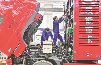 工人正在組裝美錦氫能重卡核心零部件。本報記者 郝薇 攝
