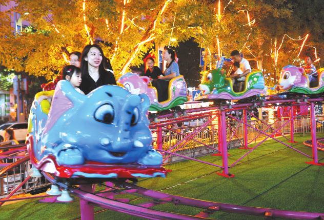 8月21日,游客在城區(qū)大欣城夜市體驗游樂設(shè)施。暑期以來,城區(qū)“夜經(jīng)濟(jì)”熱度持續(xù)攀升,多彩的夜間消費讓城市持續(xù)煥發(fā)活力。本報記者 宮清華攝