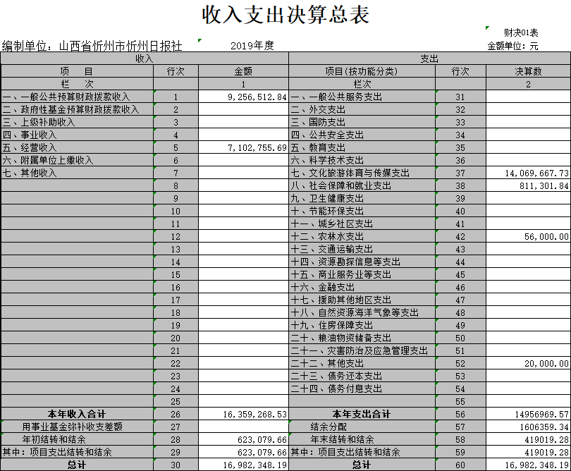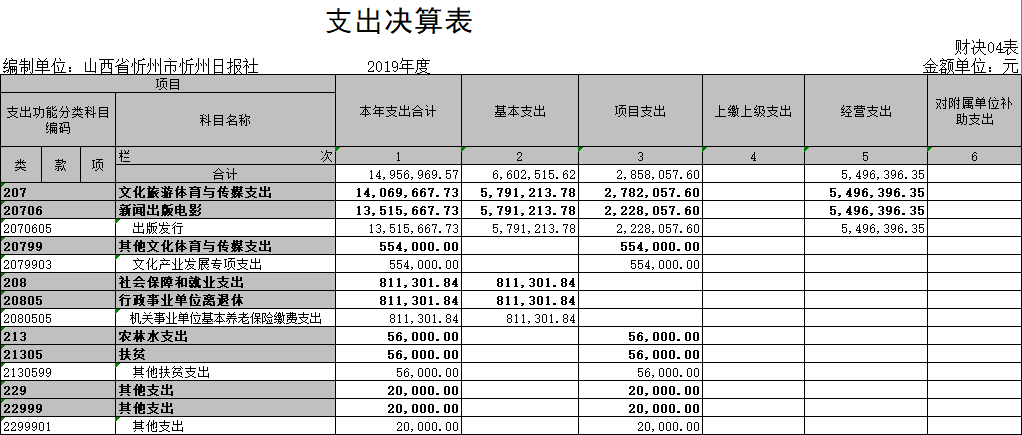 三、忻州日?qǐng)?bào)社2019年部門決算收支情況說明