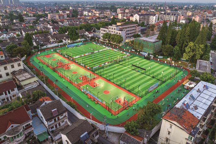 對于社區(qū)嵌入式服務綜合體所在的王店鎮(zhèn)全民健身中心,大家也都表現(xiàn)出極大的興趣。這是2020年王店鎮(zhèn)利用王店中學校區(qū)舊址打造的一個樞紐式運動場所,足球場、籃球場、門球場、室內(nèi)健身房等多個室內(nèi)外運動場所一應俱全。更特別的是,它不僅是嘉興市首個鄉(xiāng)鎮(zhèn)全民健身中心,更是當?shù)鼐拇蛟斓囊粋€集體育活動、技能培訓和休閑活動于一體的文體中心,擁有齊全的健身設施和培訓場地,能滿足周邊居民對休閑運動和企業(yè)員工提升素質的需求。