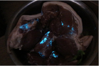 據(jù)媒體2010年12月6日報道,湖南長沙市個別市場銷售的豬肉在夜間居然能發(fā)出幽幽的藍(lán)光,這一現(xiàn)象引起廣大消費(fèi)者的恐慌。湖南省獸藥飼料監(jiān)察所所長鄧云波介紹,豬肉之所以夜間發(fā)光是生豬屠宰后被發(fā)光菌所污染導(dǎo)致。