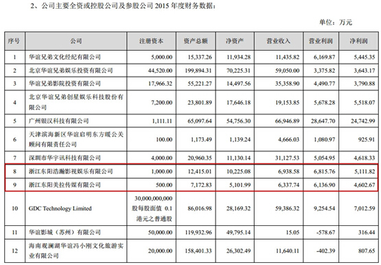 東陽浩瀚&東陽美拉2015年財務(wù)數(shù)據(jù)