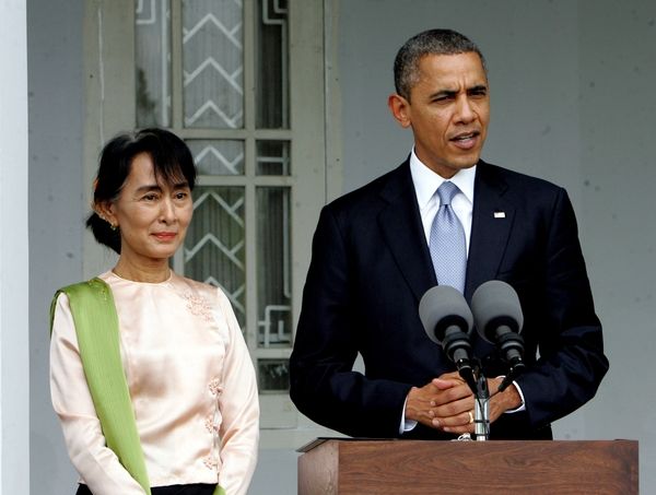 資料:2012年11月19日 ,美國總統(tǒng)奧巴馬(右)會(huì)見緬甸全國民主聯(lián)盟主席昂山素季后答記者問。