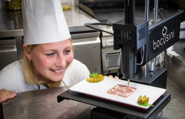 一家號(hào)稱(chēng)全3D打印的餐館將于7月晚些時(shí)候在英國(guó)倫敦開(kāi)張,不僅所有食物是3D“打印”而成,連餐桌、餐椅、燈具和餐具都出自這種技術(shù)。這家名為“食物墨水”的餐館將提供9種3D打印菜肴,并在網(wǎng)上直播“烹飪”過(guò)程。除了吃飯,顧客還可以在這家高技術(shù)氛圍濃厚的餐館體驗(yàn)虛擬現(xiàn)實(shí)技術(shù),欣賞電腦創(chuàng)作的音樂(lè)。餐館方面沒(méi)有透露3D打印菜肴的細(xì)節(jié),只說(shuō)食物主要原料將呈醬狀,打印菜肴的過(guò)程類(lèi)似面點(diǎn)師用擠花袋把奶油擠在蛋糕上做造型?!笆澄锬比司M(fèi)250英鎊(約合2220元人民幣)的高價(jià)位招來(lái)質(zhì)疑:誰(shuí)會(huì)花這么多錢(qián)吃一堆擠在塑料餐具里的漿糊?
