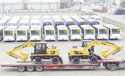 近年來,中國在全球貿(mào)易經(jīng)濟中的地位進一步上升,在世貿(mào)組織中的作用持續(xù)增強,以開放姿態(tài)贏得自身經(jīng)濟貿(mào)易體量迅速增長。圖為客車和工程機械設(shè)備在江蘇連云港港口碼頭等待裝船。 (新華社發(fā))