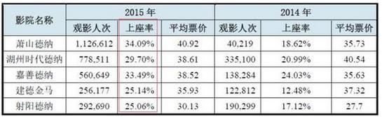 3、其2015年平均上座率為29.5%,遠超全國平均水平,其影院運營能力需足夠強才能達此水平。