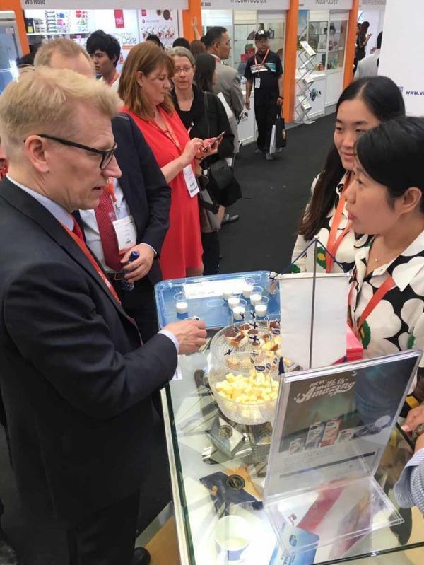 像索爾貝格之前的行為一樣,“中食展”活動(dòng)現(xiàn)場(chǎng),芬蘭環(huán)境部部長(zhǎng)基莫·蒂利凱(Kimmo Tiilikainen)也“親身示范”,品嘗起芬蘭食物。在接受澎湃新聞采訪時(shí),蒂利凱說(shuō)道,對(duì)我們而言,中國(guó)是個(gè)極具吸引力的市場(chǎng),我們有能滿足中國(guó)市場(chǎng)需求的食品門類,以及配套的電子商務(wù)服務(wù)措施。隨著中國(guó)人健康意識(shí)的增強(qiáng),我們也在有意識(shí)地面向中國(guó)市場(chǎng)開(kāi)發(fā)銷售健康食品。