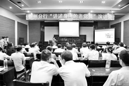 炎炎夏日,熱情似火。在建行忻州市分行12樓會(huì)議室內(nèi),一場(chǎng)以“慶祝建黨96周年,講述身邊的老黨員”為主題的演講會(huì)正在隆重上演。