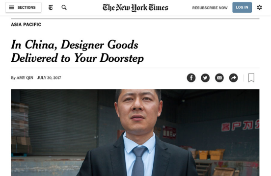 中國(guó)快遞公司提供的差異化服務(wù)也吸引了海外媒體的關(guān)注。美國(guó)《紐約時(shí)報(bào)》7月30日以《在中國(guó),設(shè)計(jì)師商品能直接送到你家門口》為題報(bào)道了中國(guó)電商的奢侈品快遞服務(wù)。