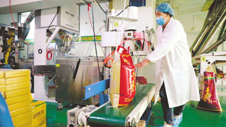 位于蔡家會(huì)鎮(zhèn)的興縣山花爛漫農(nóng)業(yè)綜合開(kāi)發(fā)有限公司,日精加工50噸谷子成套設(shè)備生產(chǎn)流水線上,經(jīng)過(guò)初篩、精選、加工、包裝后的袋裝小米經(jīng)過(guò)傳輸帶被送往庫(kù)房,等待裝車(chē)發(fā)貨?!拔覀兊漠a(chǎn)品涵蓋有機(jī)小米、綠豆、莜面、豇豆面、亞麻籽油等,年加工雜糧、油料可達(dá)4萬(wàn)多噸。”公司董事長(zhǎng)賀虎平介紹,自2005年“山花爛漫”商標(biāo)注冊(cè)以來(lái),已與興縣50多個(gè)自然村,916戶農(nóng)戶,簽訂訂單農(nóng)業(yè)近3萬(wàn)畝,其中脫貧戶430多戶,戶均收入達(dá)到1.5萬(wàn)余元/年。