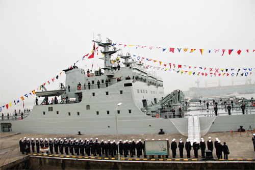 據悉,“五臺山艦”是我國自行研究設計的大型登陸艦,舷號為917,最大排水量5008噸,最大航速20節(jié)。該型登陸艦是我海軍近年來建造和裝備的新型登陸艦,性能設計更加貼近聯合登陸作戰(zhàn)的實戰(zhàn)需求。主要使命是登陸作戰(zhàn)及抗登陸作戰(zhàn)中實施輸送登陸兵渡海登陸和運送物資裝備任務。平時可執(zhí)行運輸補給、搶險救災、醫(yī)療救援等非戰(zhàn)爭軍事行動。(李忻生 郝江男)