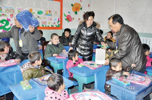 石建華在各所鄉(xiāng)村學(xué)校發(fā)放助學(xué)物資