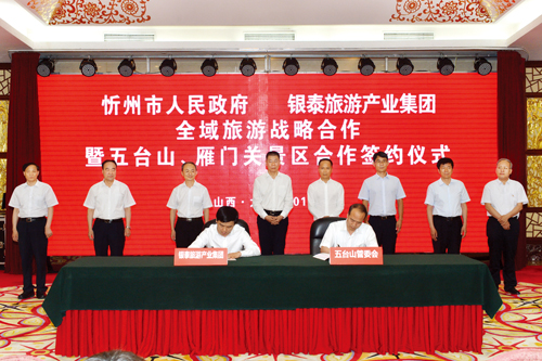 簽約儀式上,市長鄭連生和銀泰旅游產(chǎn)業(yè)集團(tuán)總裁倪海濤分別代表雙方簽訂全域旅游戰(zhàn)略合作協(xié)議。五臺山管委會與銀泰旅游產(chǎn)業(yè)集團(tuán)簽訂五臺山景區(qū)戰(zhàn)略合作協(xié)議;代縣縣政府與銀泰旅游產(chǎn)業(yè)集團(tuán)簽訂雁門關(guān)景區(qū)戰(zhàn)略合作協(xié)議。