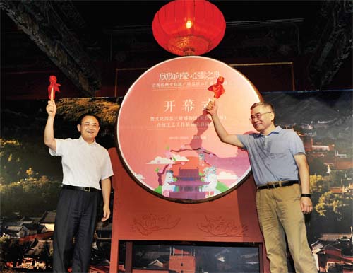 本報(bào)訊(記者 任逢春)7月22日,經(jīng)過扎實(shí)細(xì)致的準(zhǔn)備,由文化部恭王府博物館和忻州市委、市政府共同主辦的“欣欣向榮,心靈之舟”山西忻州文化遺產(chǎn)精品展示月系列活動(dòng)正式亮相首都。同日,文化部恭王府博物館(駐忻州靜樂)傳統(tǒng)工藝工作站正式成立,文化部副部長項(xiàng)兆倫和市委書記李俊明一同擊鼓啟幕,市委常委、常務(wù)副市長趙志堅(jiān)主持開幕式。文化部非遺司司長陳通,文化部恭王府博物館館長孫旭光,省委宣傳部常務(wù)副部長李福明,省文化廳副廳長趙銀邦,市委常委、宣傳部長陳義青,市委常委、秘書長崔建新,市人大常委會(huì)副主任、靜樂縣委書記李德新,副市長王月娥,以及文化部恭王府博物館、文化部離退休人員服務(wù)中心、省委宣傳部、省文化廳和我市的有關(guān)領(lǐng)導(dǎo)同志出席開幕活動(dòng)。中央、省、市媒體記者和各地游人一同見證開幕。