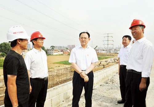 在忻州西站以北的大西客專與忻五公路交叉地段,京太鐵路(雄忻段)引入大西客專施工現(xiàn)場,李俊明詳細(xì)了解大西客專既有線路、雄忻高鐵接軌的近期工程和預(yù)留遠(yuǎn)期規(guī)劃,實(shí)地察看左右進(jìn)出線的路基打樁、擋墻施工、路基幫寬等正在進(jìn)行的工程,聽取各主要節(jié)點(diǎn)工期計劃安排,詢問工程實(shí)施中的困難問題。