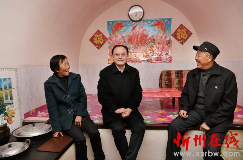 圖為省人大常委會(huì)副主任、市委書(shū)記李俊明在偏關(guān)縣新關(guān)鎮(zhèn)高家上石會(huì)村貧困戶高長(zhǎng)后家,聽(tīng)說(shuō)去年收入六萬(wàn)元,高興地鼓勵(lì)他今年再大干增收。本報(bào)記者劉紀(jì)森攝