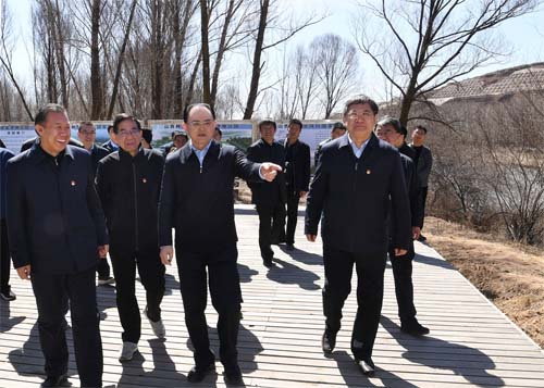 圖為4月1日,省人大常委會副主任、市委書記李俊明在靜樂縣汾河川國家濕地公園調研。本報記者 劉紀森 攝