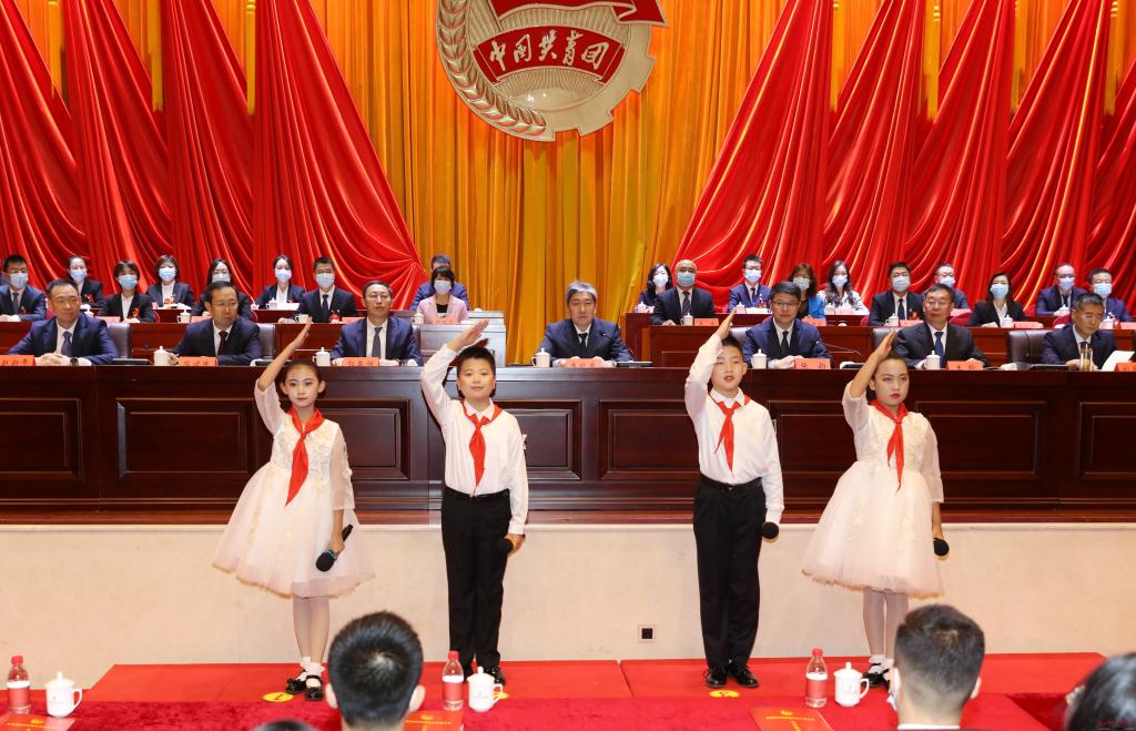 少先隊員代表向大會獻(xiàn)詞。范濤 攝