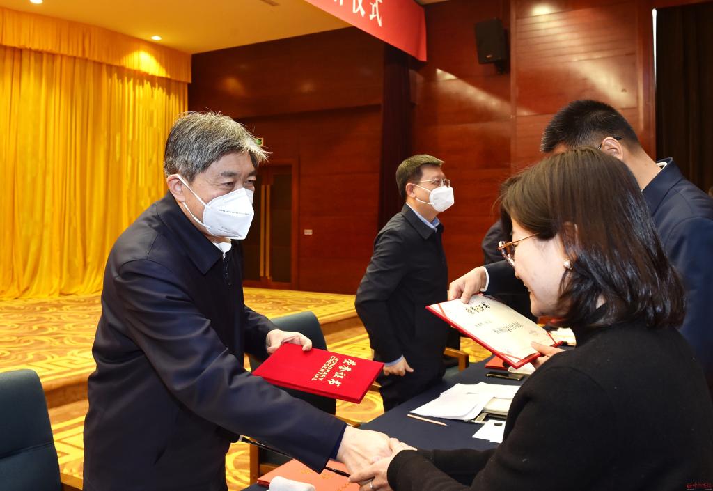 朱曉東為博士服務(wù)團(tuán)成員頒發(fā)證書。馮曉磊 攝