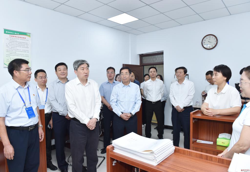 在忻州市第五中學,朱曉東聽取學校有關(guān)工作介紹,詳細了解教學規(guī)模、師資力量和基礎設施等情況,同正在集體教研的一線教師親切交流。他指出,中學階段是青少年性格形成的關(guān)鍵時期,希望大家以更多的愛心、耐心和責任心,擔起鑄魂育人的光榮使命,示范引導學生樹立正確的世界觀、人生觀、價值觀。要加強學生體育鍛煉、美育熏陶、勞動實踐,全面提升學生身心健康素質(zhì),培養(yǎng)德智體美勞全面發(fā)展的社會主義建設者和接班人。
