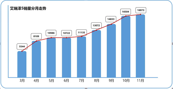 和SUV市場相比,自主品牌在轎車領(lǐng)域的表現(xiàn)一直差強人意,但是,今年奇瑞推出的一款中級家轎可謂是出盡風(fēng)頭,上市253天銷量突破10萬輛,11月份銷量達(dá)到16973輛,刷新了自主轎車新車型銷量增速記錄。在11月份舉辦的廣州國際車展期間,艾瑞澤5更是一口氣拿了11項大獎,堪稱拿獎拿到手軟。