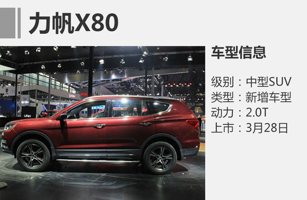 動(dòng)力方面,力帆X80全系搭載2.0T直噴發(fā)動(dòng)機(jī),最大輸出功率141千瓦,峰值扭矩286牛米,傳動(dòng)系統(tǒng)匹配6速手動(dòng)或6速手自一體變速箱。在懸架部分,這款車采用前麥弗遜/后雙連桿式獨(dú)立懸架。