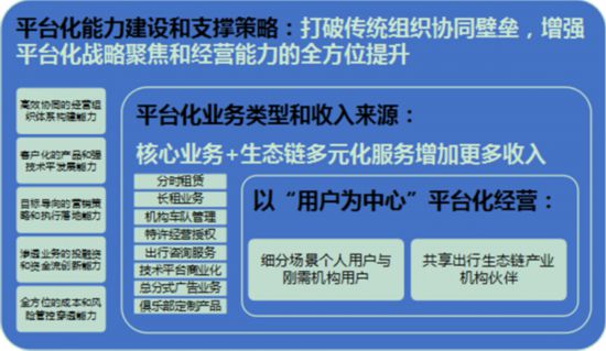 二是平臺(tái)化業(yè)務(wù)類型和收入來源,除了目前分時(shí)租賃、長租外,機(jī)構(gòu)車隊(duì)管理、特許經(jīng)營授權(quán)、出行咨詢服務(wù)、IT平臺(tái)應(yīng)用商業(yè)化、總分式廣告業(yè)務(wù)、會(huì)員俱樂部定制化產(chǎn)品等就是產(chǎn)業(yè)鏈?zhǔn)杖胄聛碓础?/p>