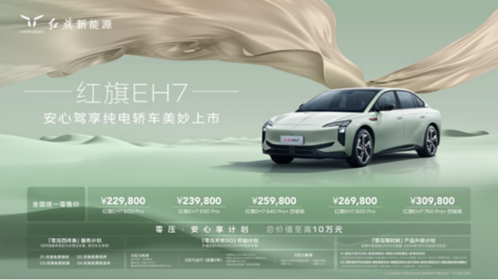 隨著環(huán)保意識(shí)的提升和新能源技術(shù)的飛速發(fā)展,新能源汽車成為全球汽車產(chǎn)業(yè)發(fā)展的新方向。紅旗新能源緊隨時(shí)代潮流,于3月20日在深圳舉辦“安心駕享·紅旗EH7上市發(fā)布會(huì)”,推出了其在新能源領(lǐng)域的里程碑產(chǎn)品——紅旗EH7,全國統(tǒng)一零售價(jià)為22.98萬-30.98萬元。這款車的推出,不僅增強(qiáng)了紅旗新能源的市場(chǎng)競(jìng)爭(zhēng)力,也為汽車行業(yè)的綠色轉(zhuǎn)型和技術(shù)革新樹立了新典范。