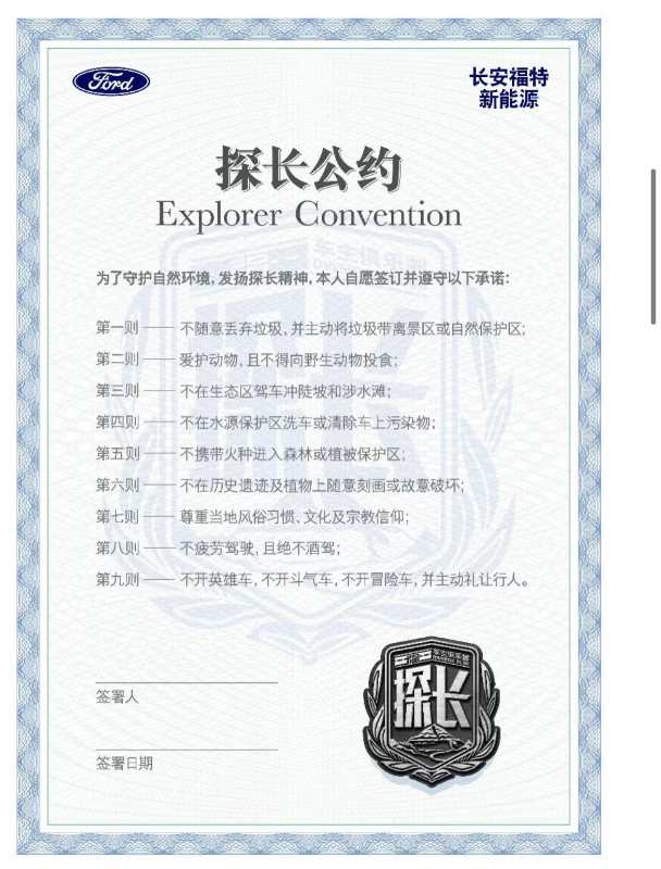 每一位支持踐行環(huán)保理念、熱衷公益的探險(xiǎn)者車主皆可簽署《福探長(zhǎng)公約》,成為一名“福探長(zhǎng)”。在“走四方、見遠(yuǎn)山”探索大美的同時(shí),心懷大愛踐行公益,書寫著屬于這個(gè)時(shí)代的探險(xiǎn)者精神新篇章。