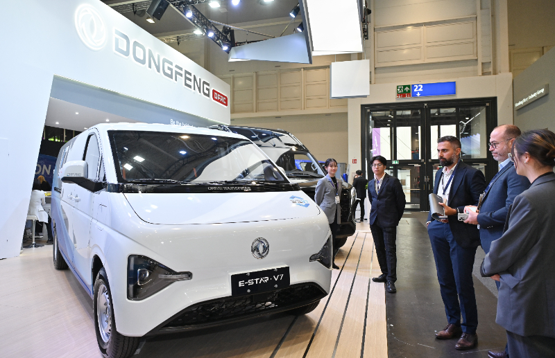 (資料圖片)2024年9月16日,在德國(guó)漢諾威國(guó)際交通運(yùn)輸博覽會(huì)媒體預(yù)展上,人們?cè)跂|風(fēng)汽車展區(qū)參觀E-STAR V7商用車。新華社記者 任鵬飛 攝