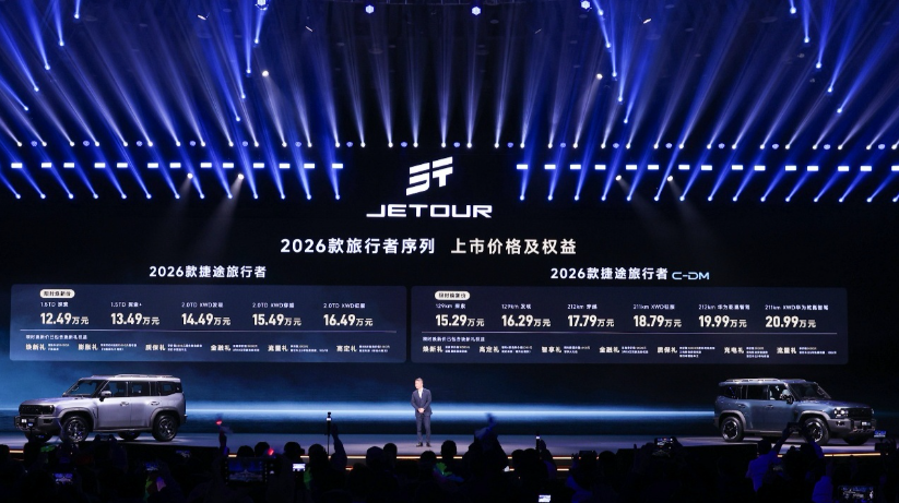 央廣網(wǎng)北京11月18日消息(記者董楠)11月17日,“旅行者之夜暨捷途汽車第四屆旅行+大會”于北京雁棲湖國際會展中心舉行。此次捷途發(fā)布了旅行者系列兩大核心車型——2026款捷途旅行者與捷途旅行者C-DM,發(fā)布會上,奇瑞汽車股份有限公司常務(wù)副總裁張國忠表示:“七年前,行業(yè)競爭日趨同質(zhì)化,捷途選擇了一條與眾不同的起跑線——聚焦‘旅行+’生態(tài)。捷途洞察到,汽車不僅是交通工具,更承載著用戶對自由、對探索、對新生活的向往。捷途堅信,在看似飽和的紅海之旁,總有通往用戶內(nèi)心的藍海?!?/p> 本屆大會上,捷途汽車正式宣布:旗下“旅行越野SUV”捷途山海T2,正式更名為“捷途旅行者C-DM”。 此次活動上2026款捷途旅行者和捷途旅行者C-DM正式上市。2026款捷途旅行者,限時煥新價12.49萬—16.49萬元,并提供6重購車好禮,捷途旅行者C-DM,限時煥新價15.29萬—20.99萬元,提供7重購車好禮。
