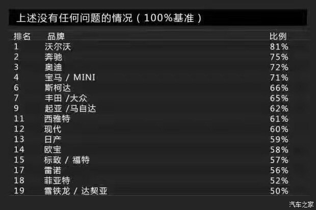Bild都發(fā)布了一份汽車品牌品質(zhì)滿意度調(diào)查報告,他們針對德國最暢銷汽車品牌top20的品質(zhì)進行了調(diào)查。從調(diào)查的結(jié)果來看,可以說讓很多消費者大跌眼鏡,因為表現(xiàn)最好的品牌并不是國人熟知的奔馳、寶馬、奧迪甚至大眾,而是來自北歐瑞典的“暖男”——沃爾沃。在這份德國本土權(quán)威汽車機構(gòu)以德國消費者為樣本進行的調(diào)查報告中,最后表現(xiàn)最佳的卻不是德系車,沃爾沃的表現(xiàn)有點來踢館的意思!