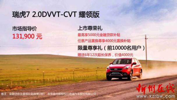 瑞虎7新增車型“耀領(lǐng)”上市售13.19萬元