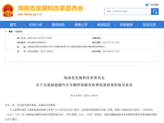 8月1日,海南省發(fā)展和改革委員會(huì)發(fā)布《關(guān)于完善新能源汽車(chē)車(chē)輛停放服務(wù)收費(fèi)優(yōu)惠政策的指導(dǎo)意見(jiàn)》(以下簡(jiǎn)稱(chēng)《意見(jiàn)》),提出一系列指向清晰的指導(dǎo)意見(jiàn)。據(jù)此,海南年內(nèi)將出臺(tái)新能源汽車(chē)車(chē)輛停放服務(wù)收費(fèi)優(yōu)惠政策,不僅比燃油汽車(chē)停車(chē)收費(fèi)優(yōu)惠,而且新能源汽車(chē)在公共區(qū)域停車(chē)還將免費(fèi)。