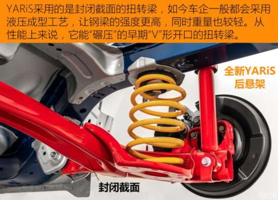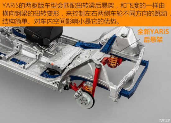 對于這些尺寸小巧的車型來說,提高車內(nèi)的空間利用率非常的重要,日本工程師往往非常擅長這一點。在全新YARiS(兩驅(qū)版)和飛度都選擇了前麥弗遜+后扭轉(zhuǎn)梁的懸架結(jié)構(gòu),這是綜合性能和空間因素后最合理的設(shè)計方案。