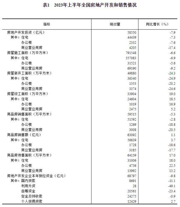 上半年,商品房銷售面積59515萬(wàn)平方米,同比下降5.3%,其中住宅銷售面積下降2.8%。商品房銷售額63092億元,增長(zhǎng)1.1%,其中住宅銷售額增長(zhǎng)3.7%。