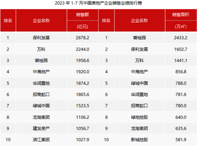 中指研究院數(shù)據(jù)顯示,2023年1-7月,TOP10房企銷售額均值為1725.5億元,較上年增長0.5%;TOP11-30房企銷售額均值為544.7億元,較上年下降4.2%;TOP31-50房企銷售均值為271.2億元,較上年下降9.7%;TOP51-100房企銷售額均值為127.4億元,同比下降13.3%。