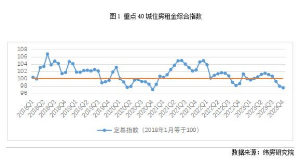 核心觀點 政策:行業(yè)規(guī)范化管理體系逐步完善,涵蓋資金監(jiān)管、信用信息管理以及從業(yè)人員實名管理等。保障性租賃住房配套政策落地,存量購買、城中村改造及“平急兩用”公共基礎(chǔ)設(shè)施建設(shè)成為保障性租賃住房拓展新渠道。各地通過優(yōu)化公積金提取租金的方式,加大對于租賃消費的支持。 行業(yè):各地因城施策、創(chuàng)新多元化方式加快推進保障性租賃房源管理和供應(yīng)。住房租賃市場主體活躍度較高,陸續(xù)有新品牌、新產(chǎn)品線、新項目推出,企業(yè)合作增多。租賃企業(yè)多個融資渠道發(fā)力,產(chǎn)業(yè)基金數(shù)量和規(guī)模、銀行貸款規(guī)模均保持增加,項目上更多聚焦保障性租賃住房。 市場:住房租金先升后降,總體低于上年同期水平。一線城市租金微漲為主,二三線城市租金下跌居多。房源出租速度同比減緩。 展望:租金總體穩(wěn)中有降,成交規(guī)模上升。隨著人口流動加大,不同城市租房市場繁榮與低迷并存。 一、2023年住房租金變動情況 (一)住房租金先升后降,總體低于上年水平 總體來看,2023年住房租金雖然經(jīng)歷了季節(jié)性上漲,但租金水平低于上年同期水平。住房大數(shù)據(jù)監(jiān)測系統(tǒng)顯示,2023年核心40城住房租金指數(shù)平均為100.01(2018年1月為100),而2022年平均租金指數(shù)為101.25,相比下降了1.22%。 分時間段來看,住房租金總體呈現(xiàn)先升后降的趨勢。受到校畢業(yè)生租房需求增加的影響,住房租金水平波動上漲,從2022年末的98.61漲至2023年7月的101.45。隨著需求的釋放,住房租金隨后進入下降趨勢,核心40城租金指數(shù)降至2023年末的97.44。2023年末的租金水平與2022年末相比,下降了1.19%。租金水平雖有所下降,但總體穩(wěn)定,未出現(xiàn)大起大落。