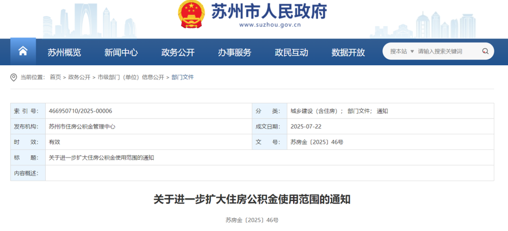 8月12日,蘇州市住房公積金管理中心發(fā)布了《關(guān)于進(jìn)一步擴(kuò)大住房公積金使用范圍的通知》,自9月1日起正式施行。