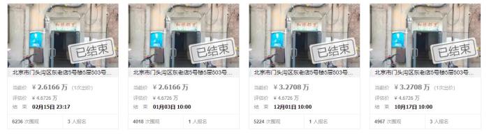 據(jù)阿里資產(chǎn)·司法平臺顯示的信息,北京市門頭溝區(qū)東老店5號樓5層503號(2%份額)在幾天前結(jié)束了拍賣,最終以26166.6元的價格被拍下。